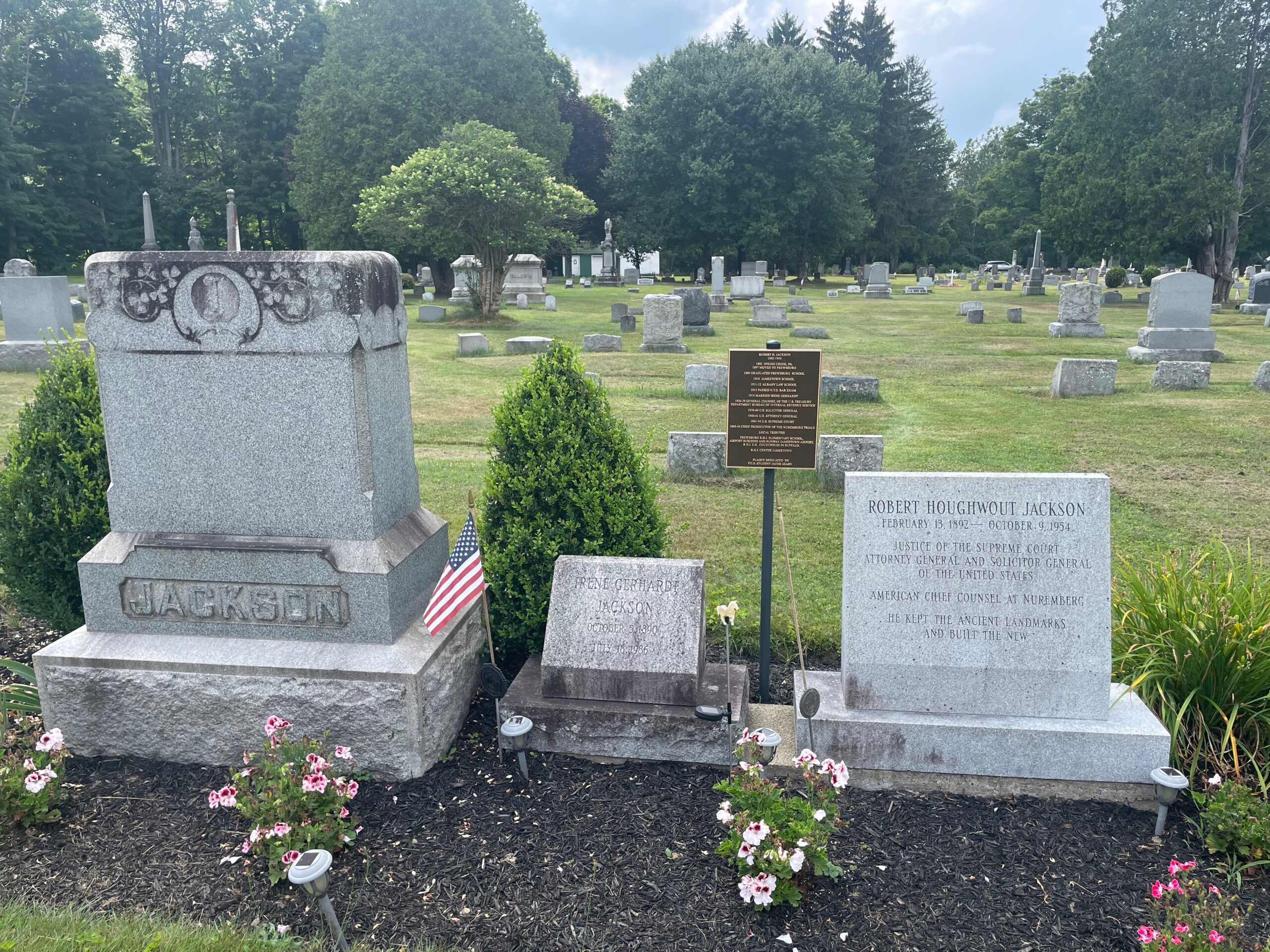 Robert Jackson is buried in Maple Grove Cemetery, Frewsburg, New York.